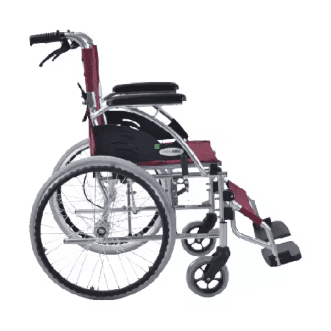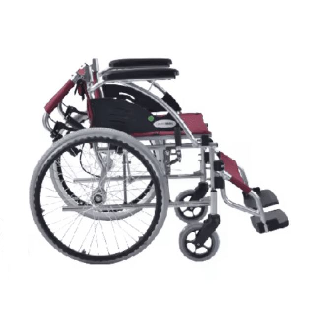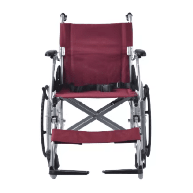 This wheelchair features a lightweight aluminum alloy frame with several comfort and safety designs, such as foldable backrest and portable brake functionality, suitable for users with various needs, and has a load capacity of 100kg.